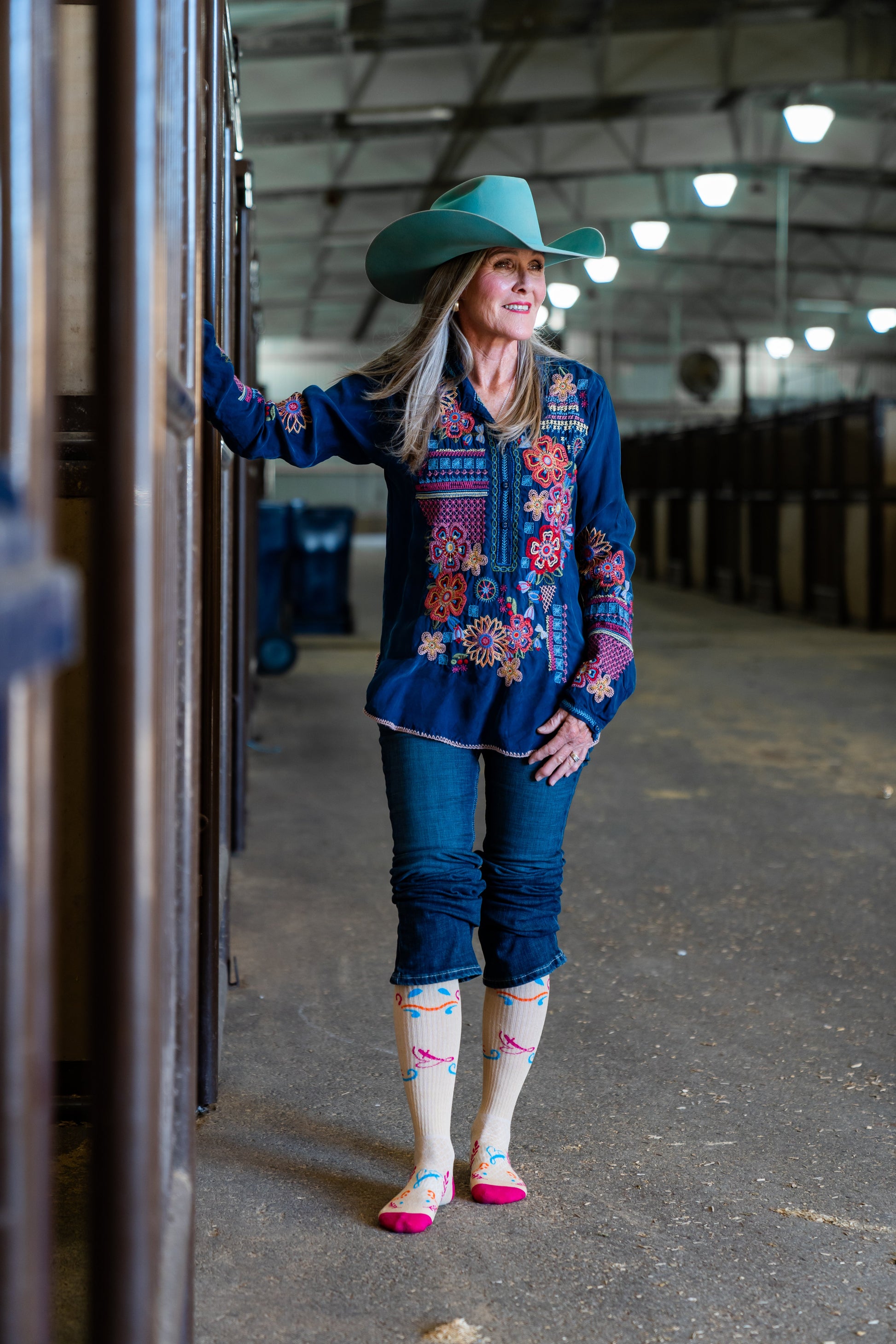Designed by head cowgirl Lorinda Van Newkirk, it’s no surprise these riding essentials come pack with style and well-thought-out design. They are tall enough and stay up to protect your calves and never cut the circulation off. Lucky Chuck Performance Socks softens with every wash, but without wearing out ~ meaning even more chances to wear your lucky socks every day. Everyone deserves to wear a pair of LUCKY Chuck SOCKS!!